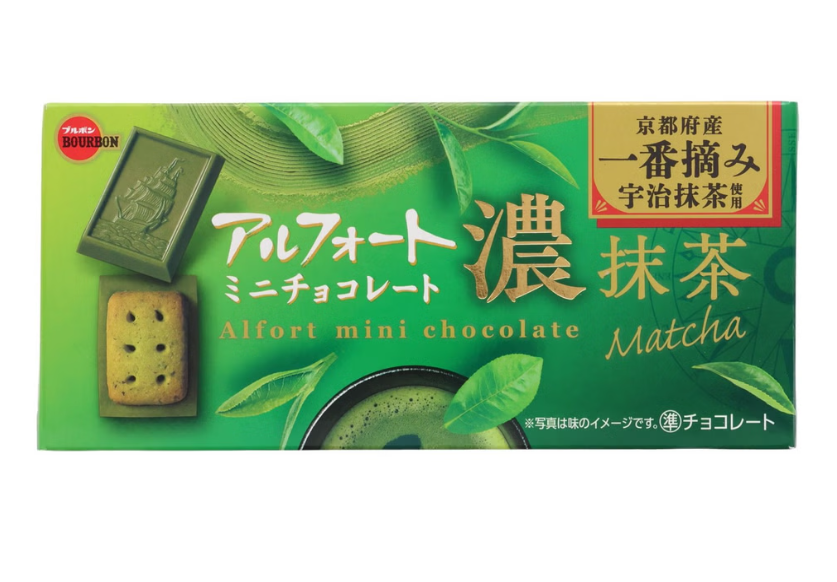 Enjoy the perfect blend of crispy whole-grain biscuits and rich Uji matcha chocolate with Bourbon...