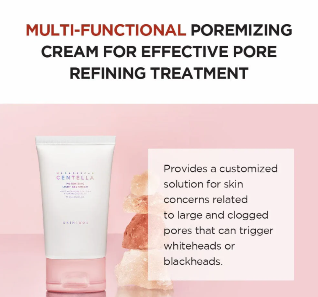 The SKIN1004 Madagascar Centella Poremizing Light Gel Cream is a refreshing, lightweight gel moisturizer designed to tighten pores, balance oil, and soothe sensitive skin. Formulated with Madagascar Centella Asiatica, Pink Himalayan Salt, and hydrating ingredients, it helps calm irritation while controlling shine. Its fast-absorbing gel texture provides long-lasting hydration without heaviness, making it ideal for oily, combination, or acne-prone skin.
