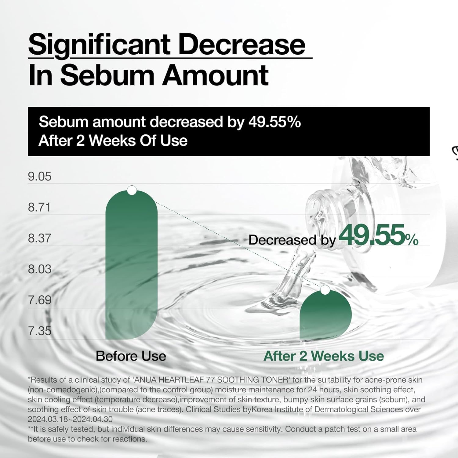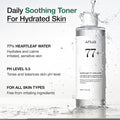 Calm and refresh sensitive or irritated skin with the Anua Heartleaf 77% Soothing Toner, enriched with 77% Heartleaf (Houttuynia Cordata) Extract and natural soothing agents.