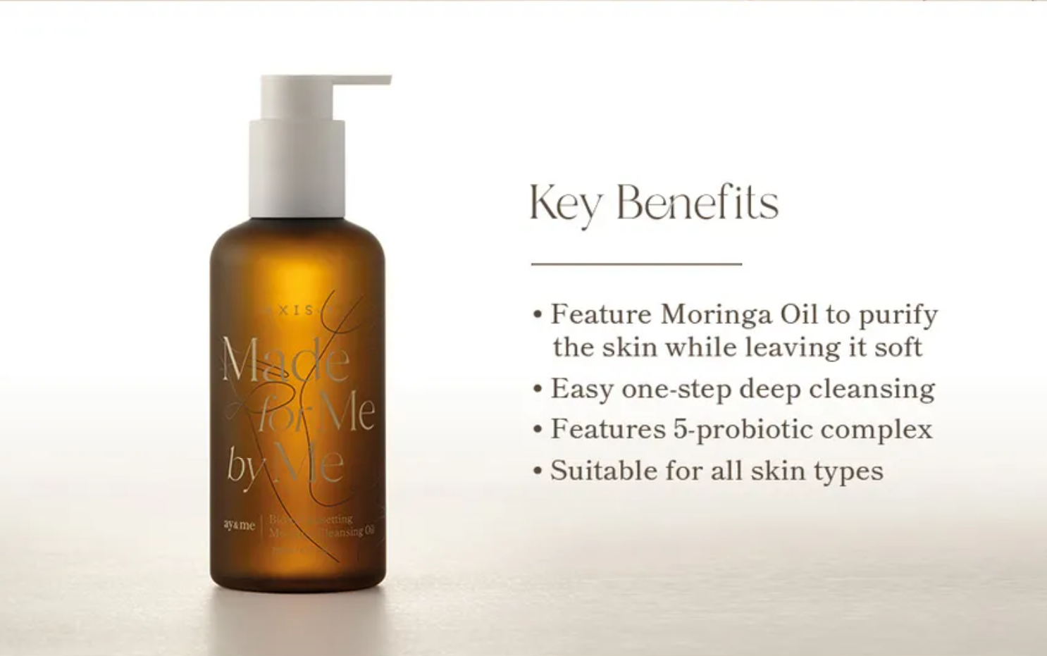 The Axis-Y Biome Resetting Moringa Cleansing Oil is a lightweight, vegan-friendly oil cleanser designed to effectively remove makeup, sunscreen, and impurities while supporting a healthy skin barrier. Formulated with Moringa Oleifera Seed Oil and a probiotic-rich Biome Complex, it purifies the skin without stripping its natural moisture. The oil emulsifies upon contact with water, transforming into a milky texture that rinses clean, leaving the skin refreshed, soft, and balanced—ideal for all skin types, including sensitive skin.