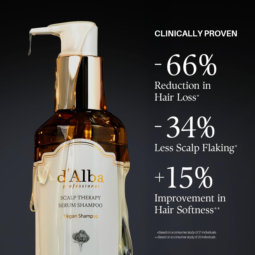 The d’Alba Scalp Therapy Serum Shampoo is a luxurious scalp-care shampoo that combines deep cleansing with nourishing serum ingredients. Infused with white truffle extract, plant-based oils, and amino acids, it helps soothe and balance the scalp while strengthening and hydrating the hair. Its lightweight formula removes excess sebum and impurities without stripping moisture, leaving hair soft, refreshed, and full of shine.
