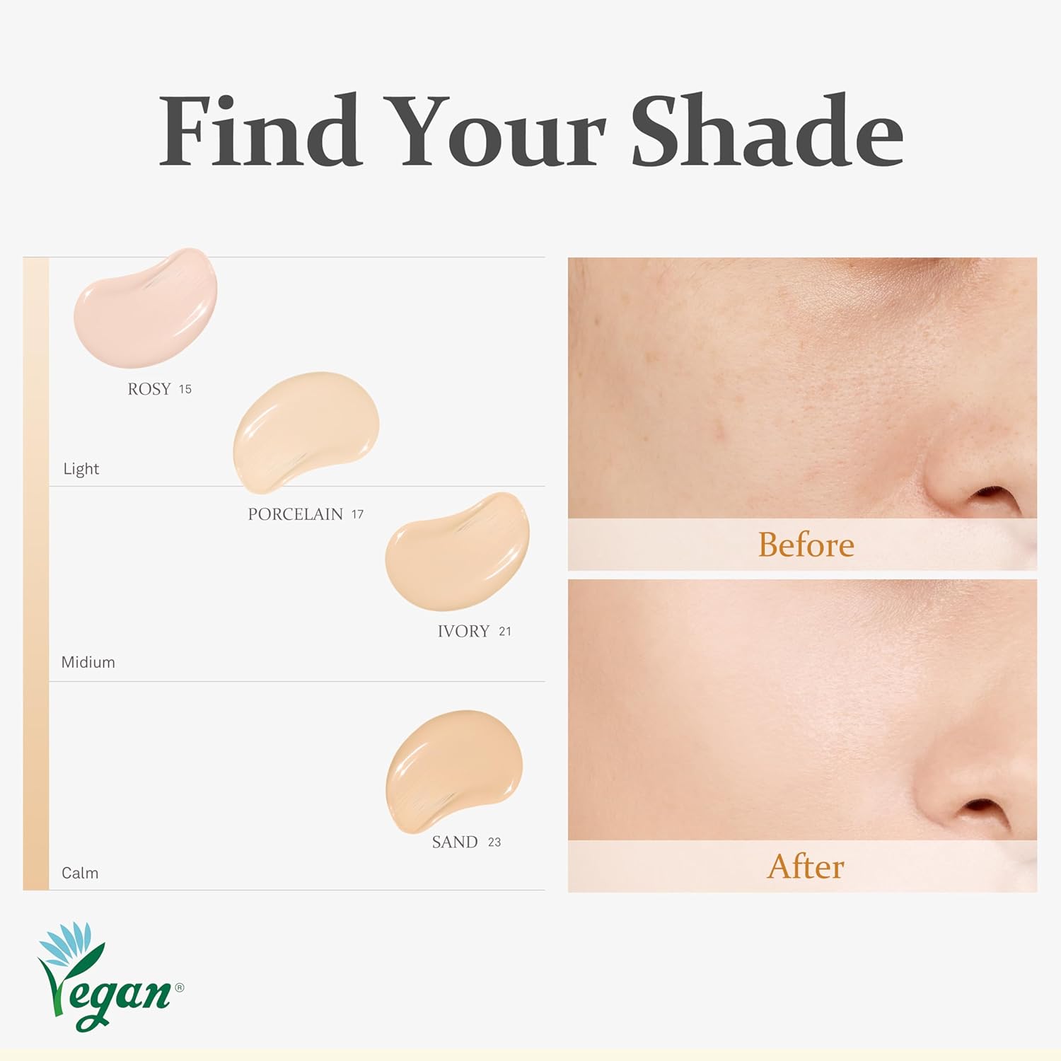 Shade 21 Ivory offers a light, neutral tone perfect for fair skin with subtle warmth.