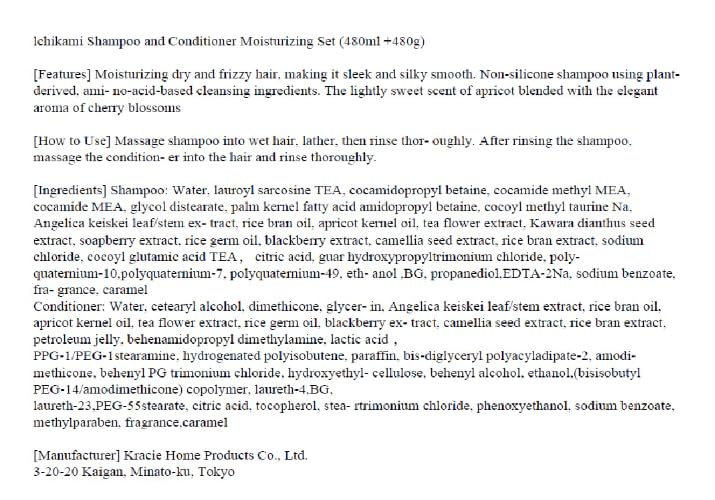 Ichikami Moisturizing Shampoo & Conditioner Set 480ml+480ml