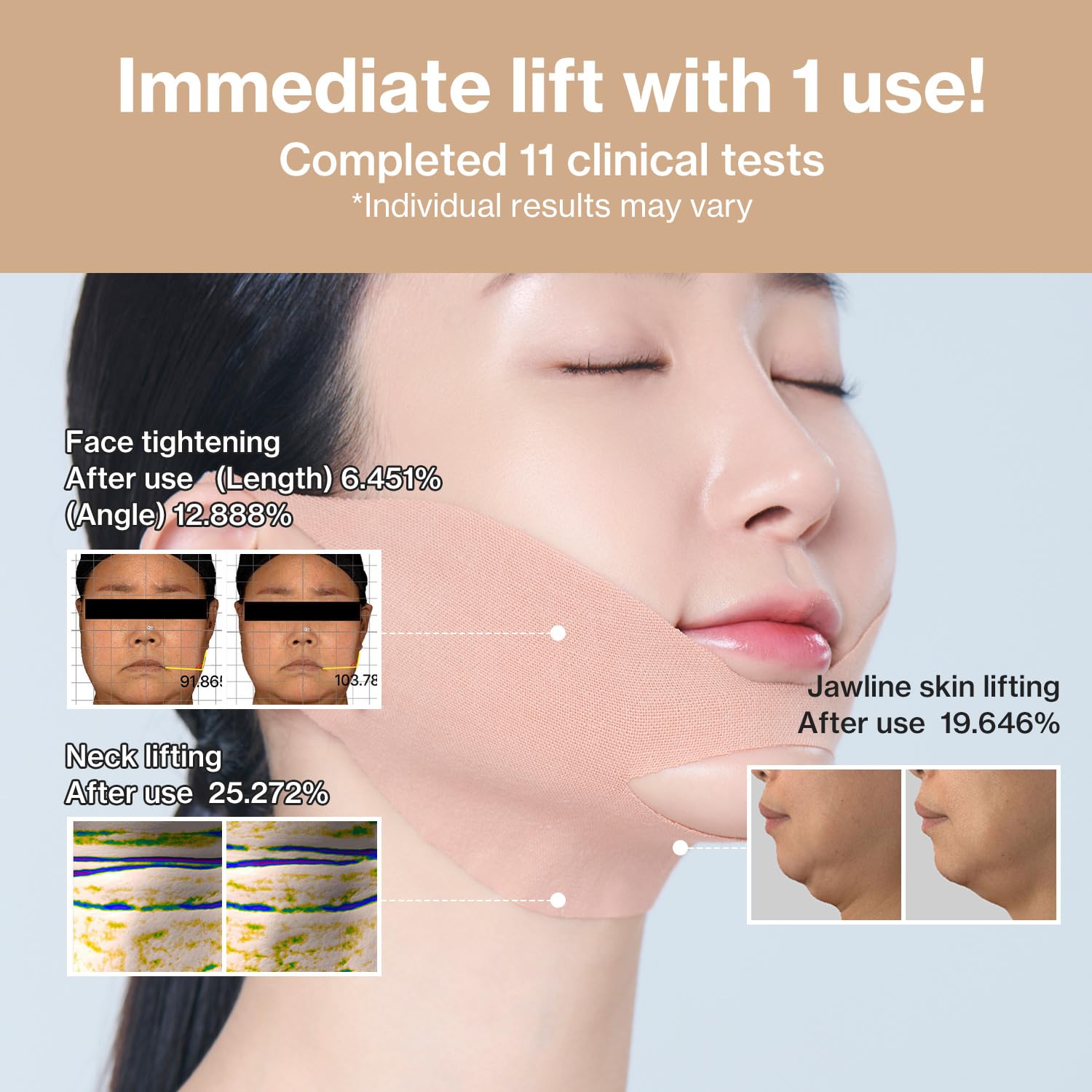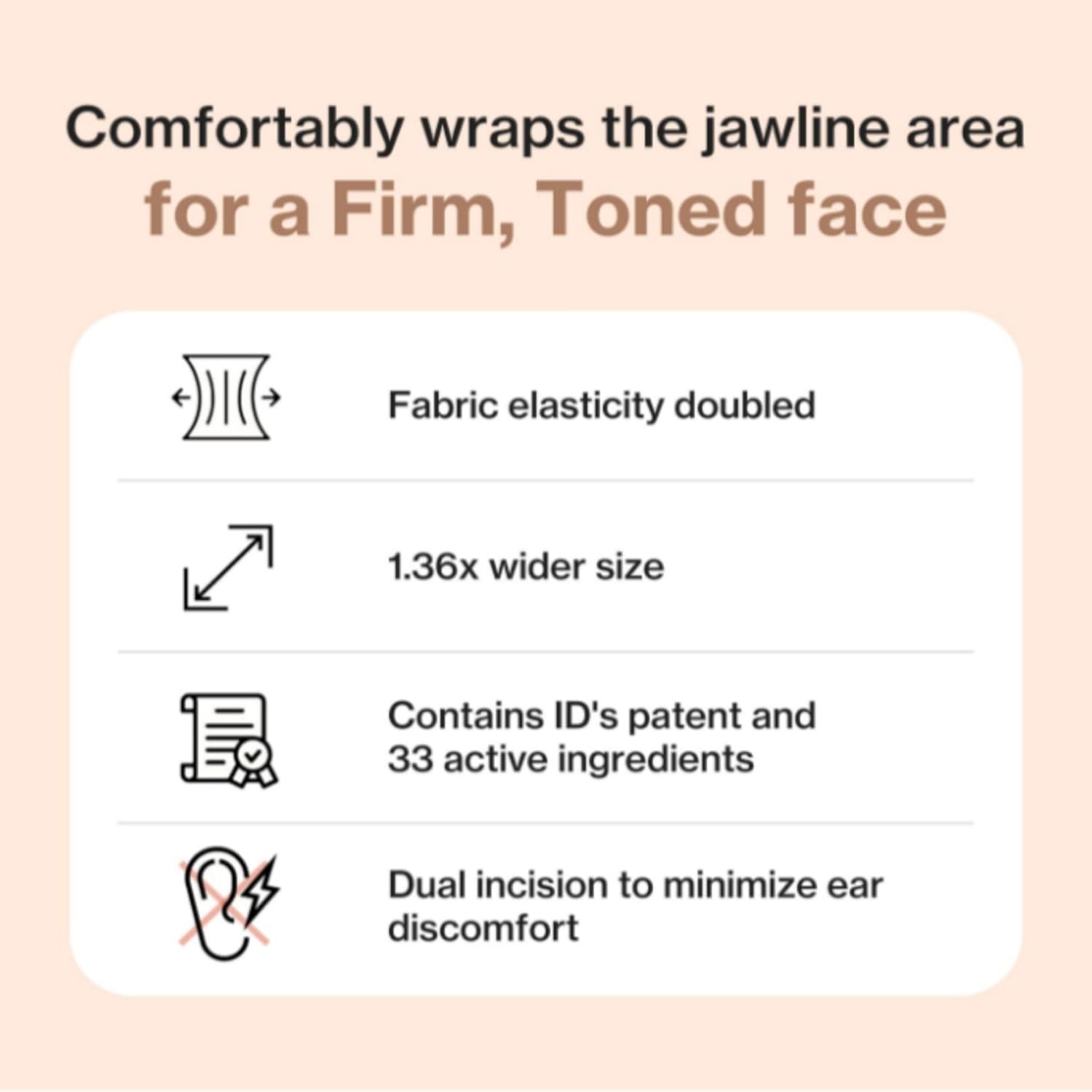 Infused with collagen, peptides, and caffeine extract, it helps improve skin elasticity and reduce puffiness. The soft, stretchable fabric fits comfortably around the chin and cheeks, delivering professional-level lifting care at home.