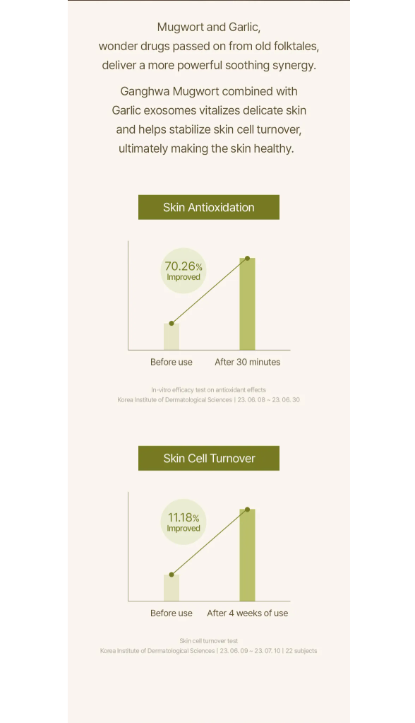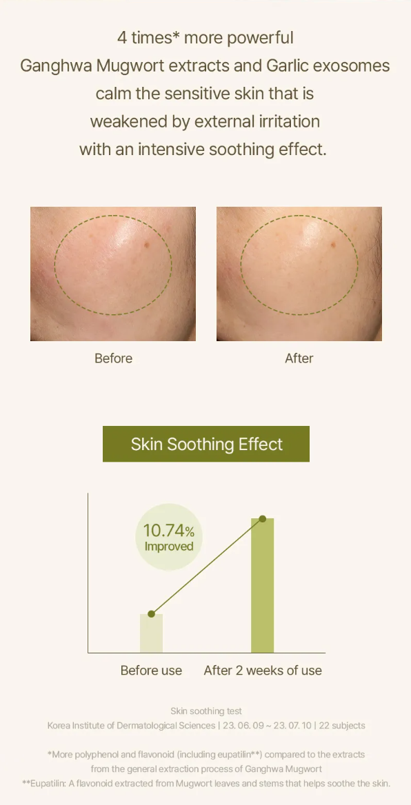 Contains Korean Mugwort Extract for soothing and healing benefits