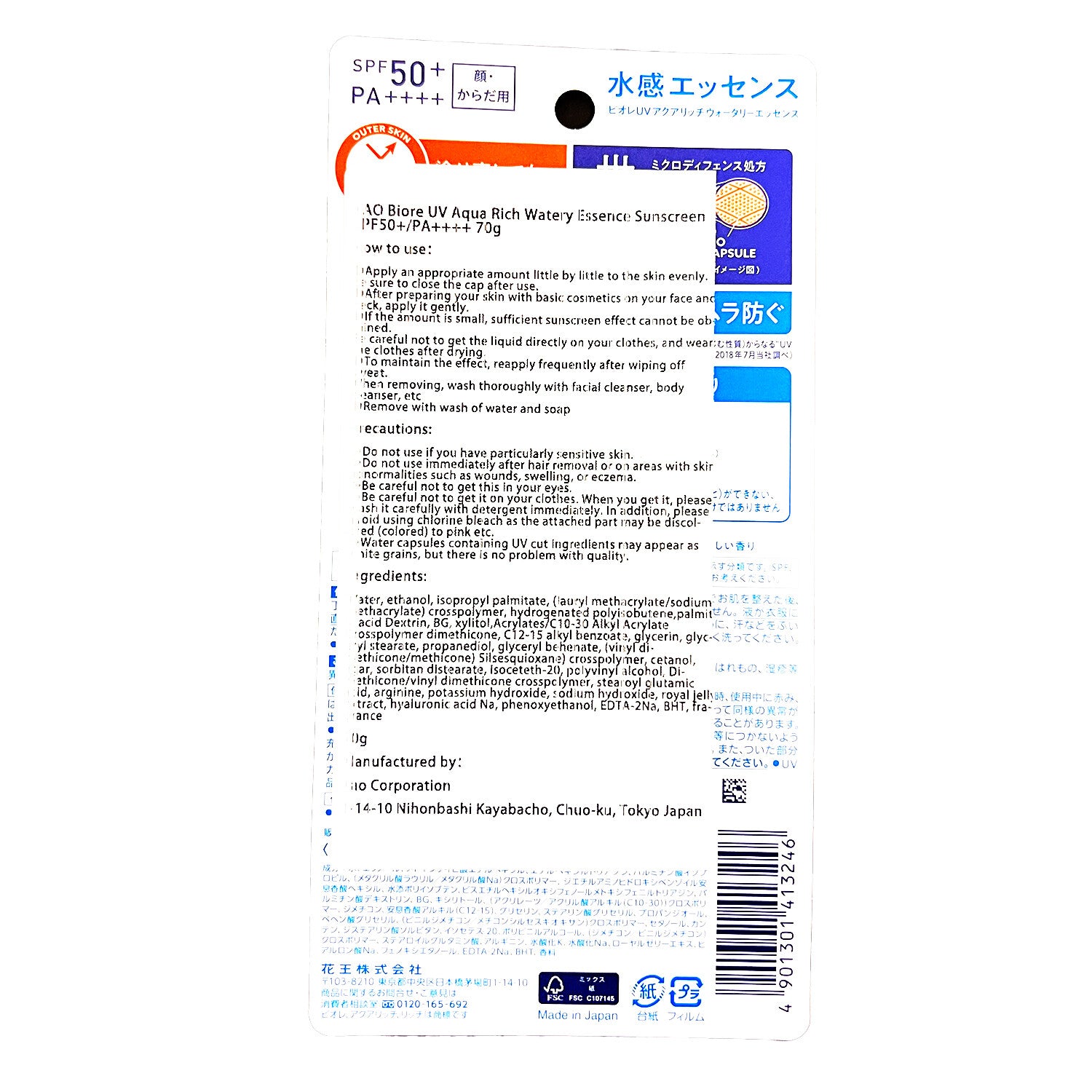 KAO Biore UV Aqua Rich Watery Essence Sunscreen SPF50+/PA++++ 70g