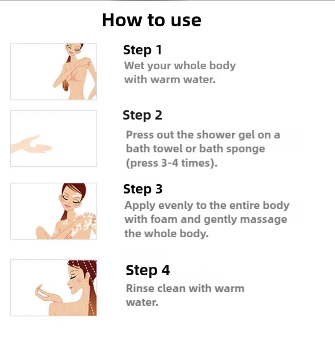 Pump an appropriate amount onto a bath sponge or towel.