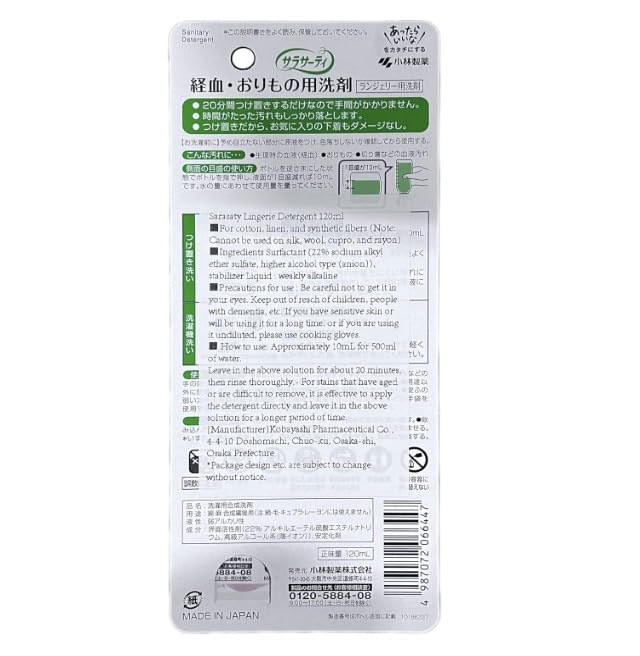 Kobayashi Lingerie Detergent Soap, 120ml, Floral Scent, Gentle Stain Remover