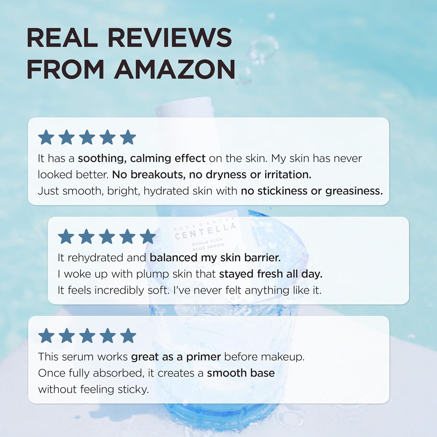 The SKIN1004 Madagascar Centella Hyalu-Cica Blue Serum provides intense hydration and calming care for sensitive and dehydrated skin. Formulated with Centella Asiatica extract from Madagascar and Hyaluronic Acid, this lightweight serum helps replenish moisture, strengthen the skin barrier, and reduce redness. The unique Hyalu-Cica formula combines soothing and hydrating benefits, leaving your skin refreshed, balanced, and glowing.