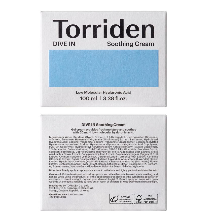 Torriden Dive Soothing Cream Low Molecular Hyaluronic Acid 100ml
