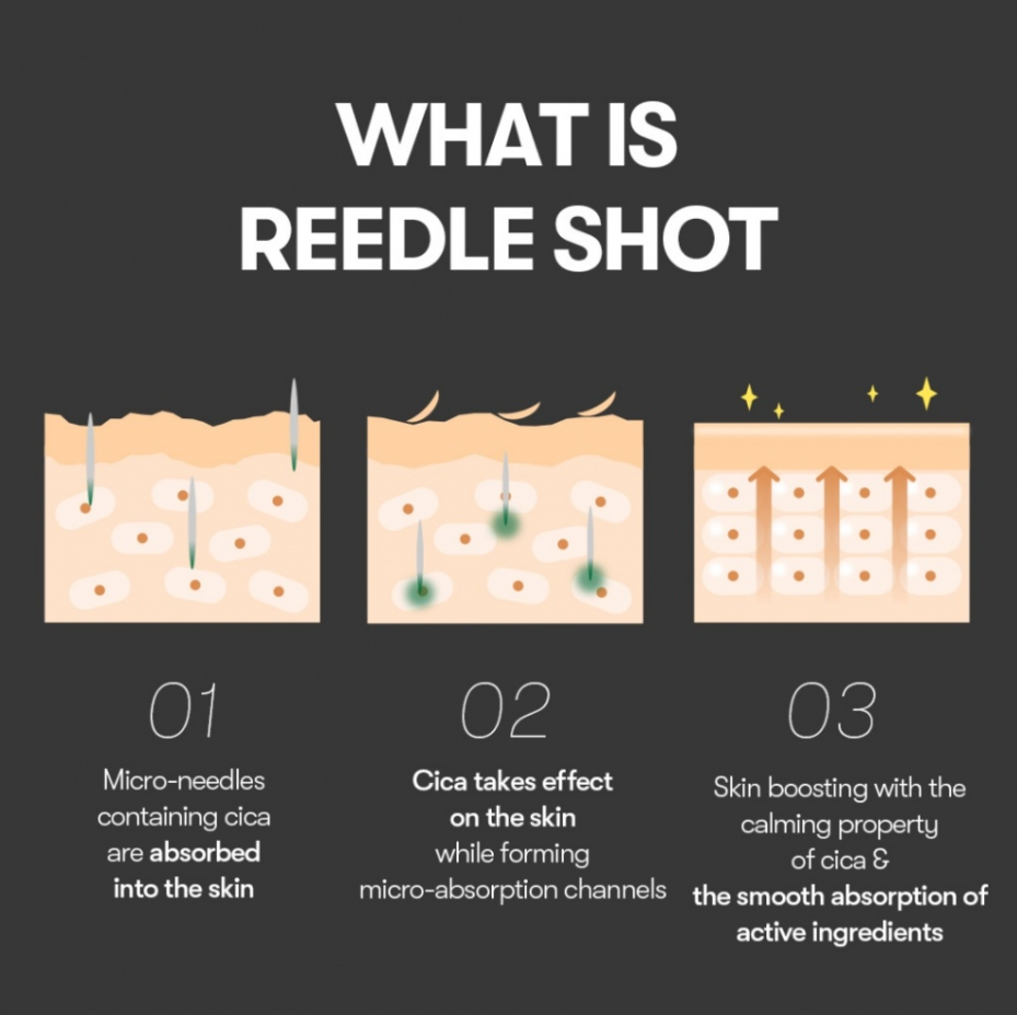 The VT Reedle Shot Ampouler is a 7-day intensive care program designed to smooth, refine, and revitalize your skin. Each ampoule contains concentrated serum with Reedle Shot spicule technology, which helps boost absorption, improve skin texture, and deliver hydration. Packed with soothing and nourishing ingredients, it supports a radiant and healthy-looking complexion.