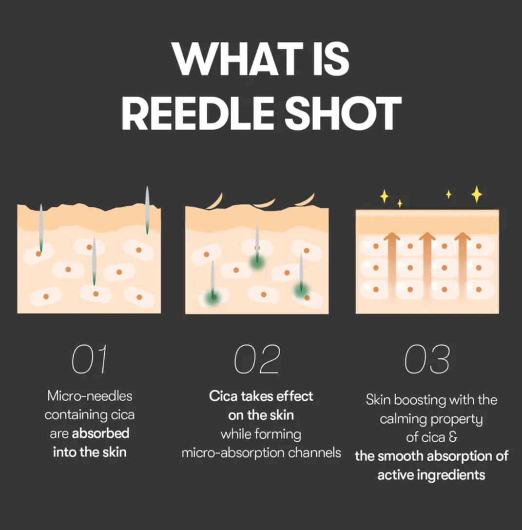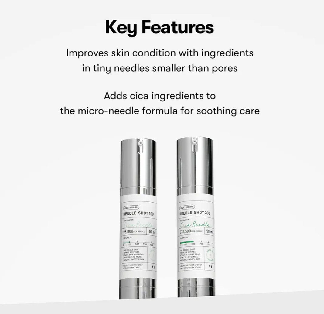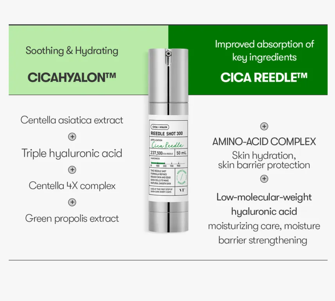 The VT Reedle Shot 300 is an intensive microneedling-inspired serum designed for advanced skin care. Using 300-level Reedle spicule technology, it delivers a stronger exfoliating and absorption-boosting effect compared to Reedle Shot 100. Infused with soothing and hydrating ingredients, it helps refine skin texture, reduce the look of pores, and improve elasticity, leaving skin firmer, smoother, and more radiant.